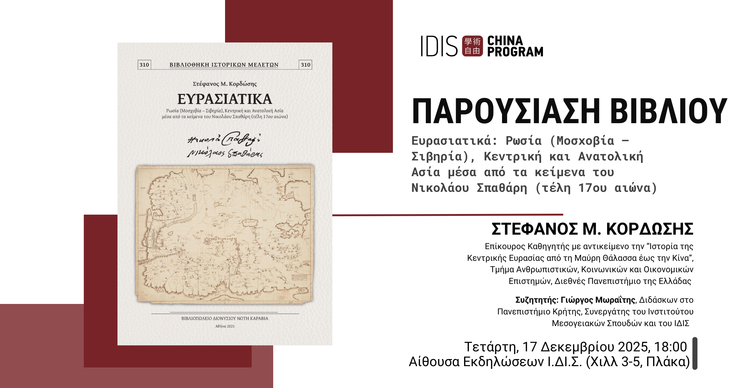 Παρουσίαση Βιβλίου: Ευρασιατικά: Ρωσία (Μοσχοβία – Σιβηρία), Κεντρική και Ανατολική Ασία μέσα από τα κείμενα του Νικολάου Σπαθάρη (τέλη 17ου αιώνα)
